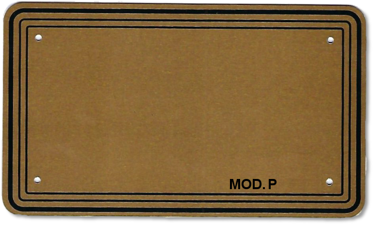 Ulteriore vasta disponibilità modelli e colori potranno essere da voi visionati contattandoci. 58P-PIANA.png 112.png 115.png 120.png 58P.png TARGA MOD. 102Z.png